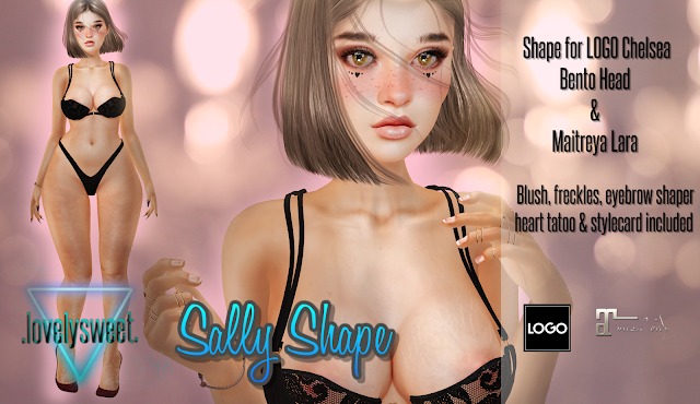 I've included BOM freckles, BOM blush, and BOM under eye heart tattoos with this shape, as well as an eyebrow shaper and a style card.